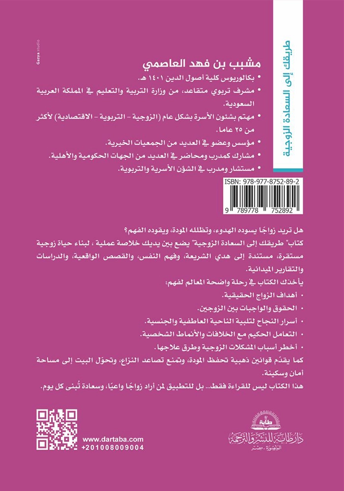 “طريقك إلى السعادة الزوجية” ليس كتابًا يُقرأ مرة واحدة ، بل رفيق طريق يُرجع البوصلة كلما تغيرت، ويذكّرك أن السعادة ليست حلمًا بعيدًا ، بل قرارًا يُصنع داخل البيت.